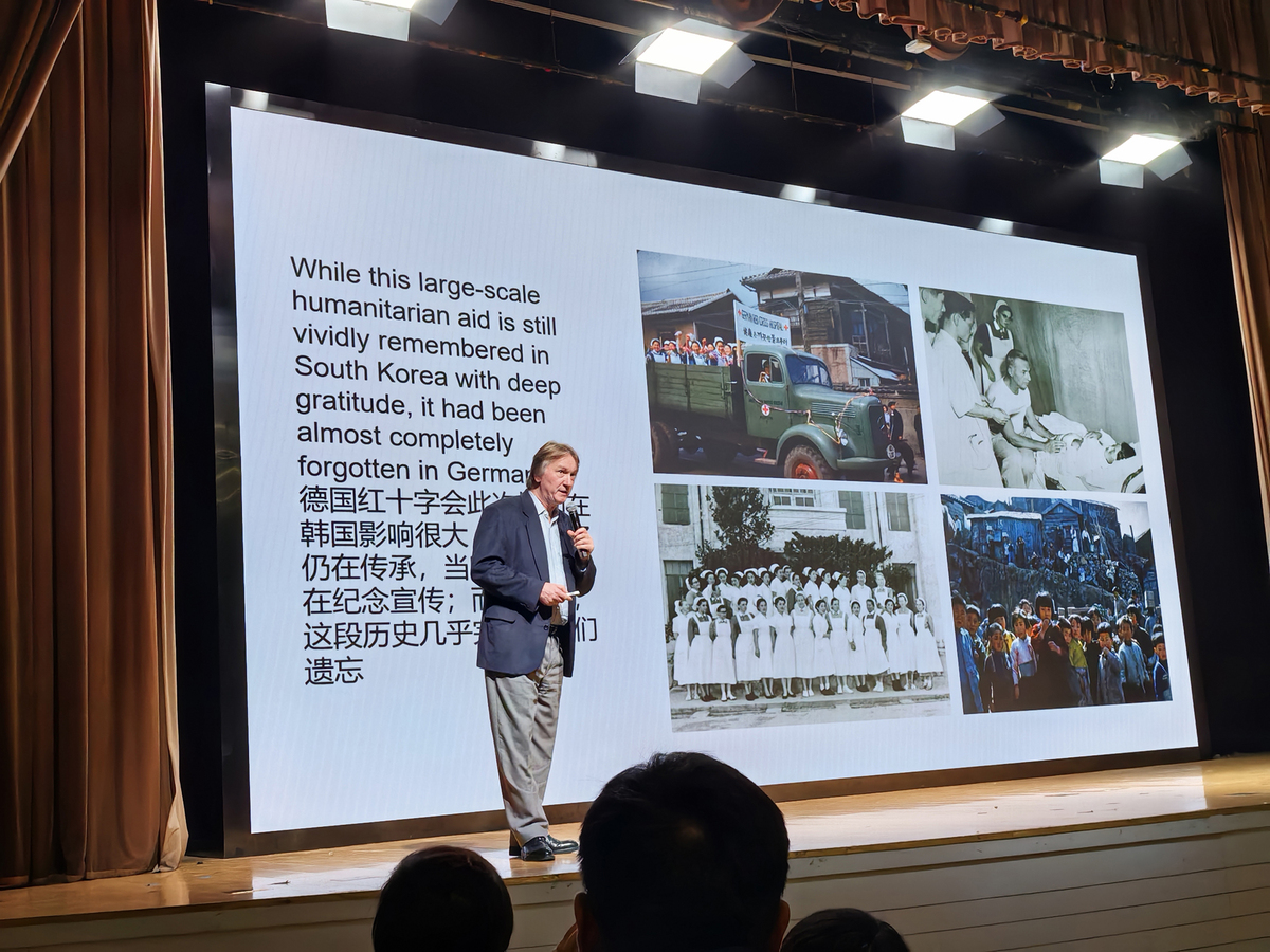 Im November 2025 hatte ich Gelegenheit, dieses Projekt an der Communication University of China in Peking vorzustellen, wo sich das Cui Yongyuan Oral History Research Center seit vielen Jahren der Kultur der mündlichen Überlieferung widmet. Für seine alljährliche Konferenz hatte es fünfzig Projekte ausgewählt, zehn davon wurden auf der abschließenden Gala ausführlich präsentiert. Und so gab ich vor vierhundert Zuschauern einen Überblick über die seit 2016 laufende Zeitzeugenarbeit des DRK, berichtete über die dabei gesammelten Erfahrungen und stellte die daraus hervorgegangenen Publikationen vor.